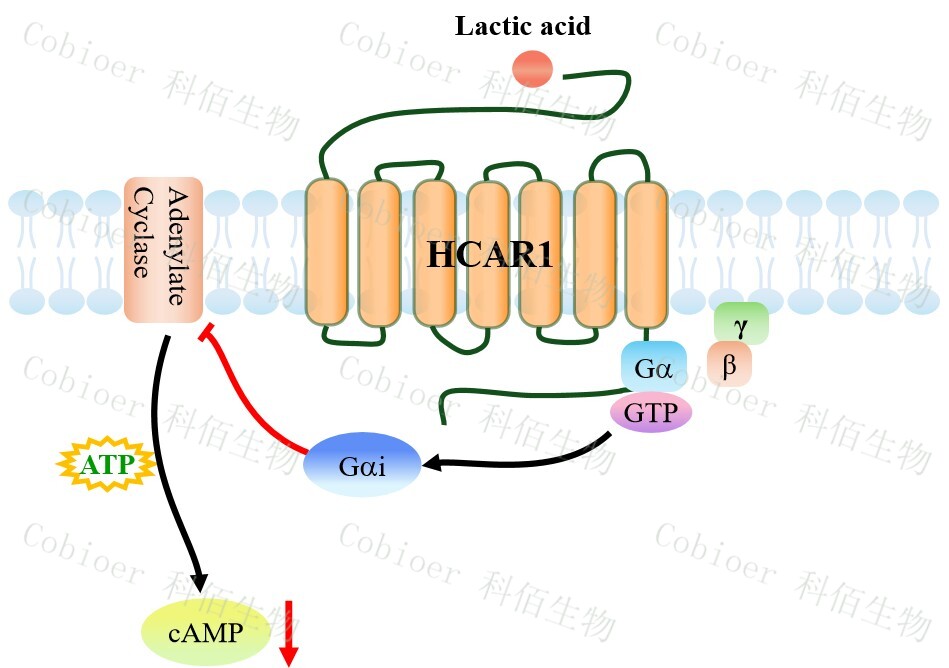 HCAR1(羥基羧酸受體 1),亦稱 GPR81,是一種分布于脂肪組織、免疫細(xì)胞(如巨 噬細(xì)胞)、神經(jīng)元及肝細(xì)胞的 G 蛋白偶聯(lián)受體(GPCR),屬于羥基羧酸受體亞家族,其 內(nèi)源性配體為乳酸(L-lactate);該受體通過(guò)偶聯(lián) Gi/o 蛋白,抑制腺苷酸環(huán)化酶,降低 cAMP 水平,從而抑制 PKA 信號(hào),同時(shí)激活β-arrestin 通路。其核心功能包括,在脂肪組織 中抑制脂解、促進(jìn)脂質(zhì)儲(chǔ)存,在免疫細(xì)胞中調(diào)控炎癥反應(yīng)(如抑制促炎因子釋放、促進(jìn) M2 型巨噬細(xì)胞極化),在神經(jīng)系統(tǒng)中參與乳酸介導(dǎo)的神經(jīng)保護(hù)及能量穩(wěn)態(tài)調(diào)節(jié);其信號(hào) 異常與代謝性疾病(如肥胖、胰島素抵抗)、神經(jīng)炎癥疾病(多發(fā)性硬化、腦缺血)及腫 瘤微環(huán)境重塑(乳酸介導(dǎo)的免疫逃逸)密切相關(guān),尤其在腫瘤組織中高表達(dá)的 HCAR1 可 通過(guò)抑制抗腫瘤免疫應(yīng)答促進(jìn)進(jìn)展,成為代謝-免疫交叉治療的潛在靶點(diǎn)。