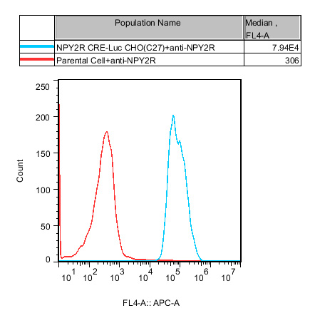 NPY2R CRE-Luc CHO 藥靶模型很好的模擬了體內(nèi) NPY2R 的信號轉(zhuǎn)導(dǎo)過程,原理見下圖所示。![]() Figure 1. NPY2R CRE-Luc CHO 細胞模型原理圖 |