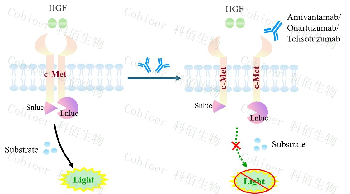 MET Dimerization CHO 報告基因藥靶模型很好的模擬了體內(nèi) MET 的信號轉(zhuǎn)導(dǎo)過程, 原理見下圖所示。![]() Figure 1. MET Dimerization CHO 細胞模型原理圖 |