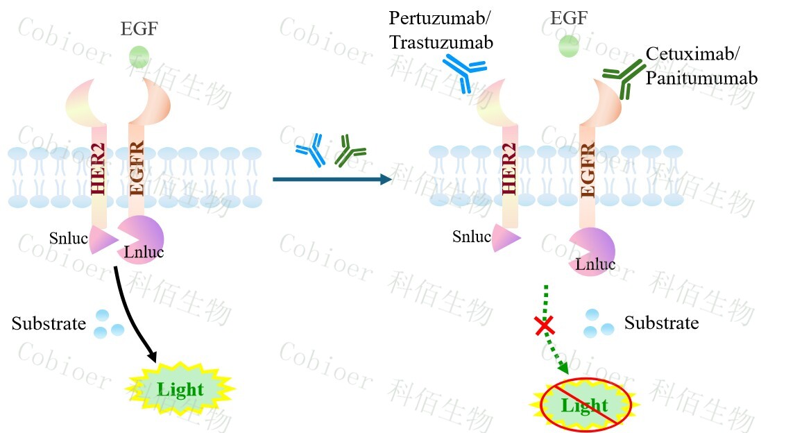 EGFR&ERBB2 Dimerization CHO 報告基因藥靶模型很好的模擬了體內(nèi) EGFR&ERBB2 的信號轉(zhuǎn)導(dǎo)過程,原理見下圖所示。![]() Figure 1. EGFR&ERBB2 Dimerization CHO 細(xì)胞模型原理圖 |