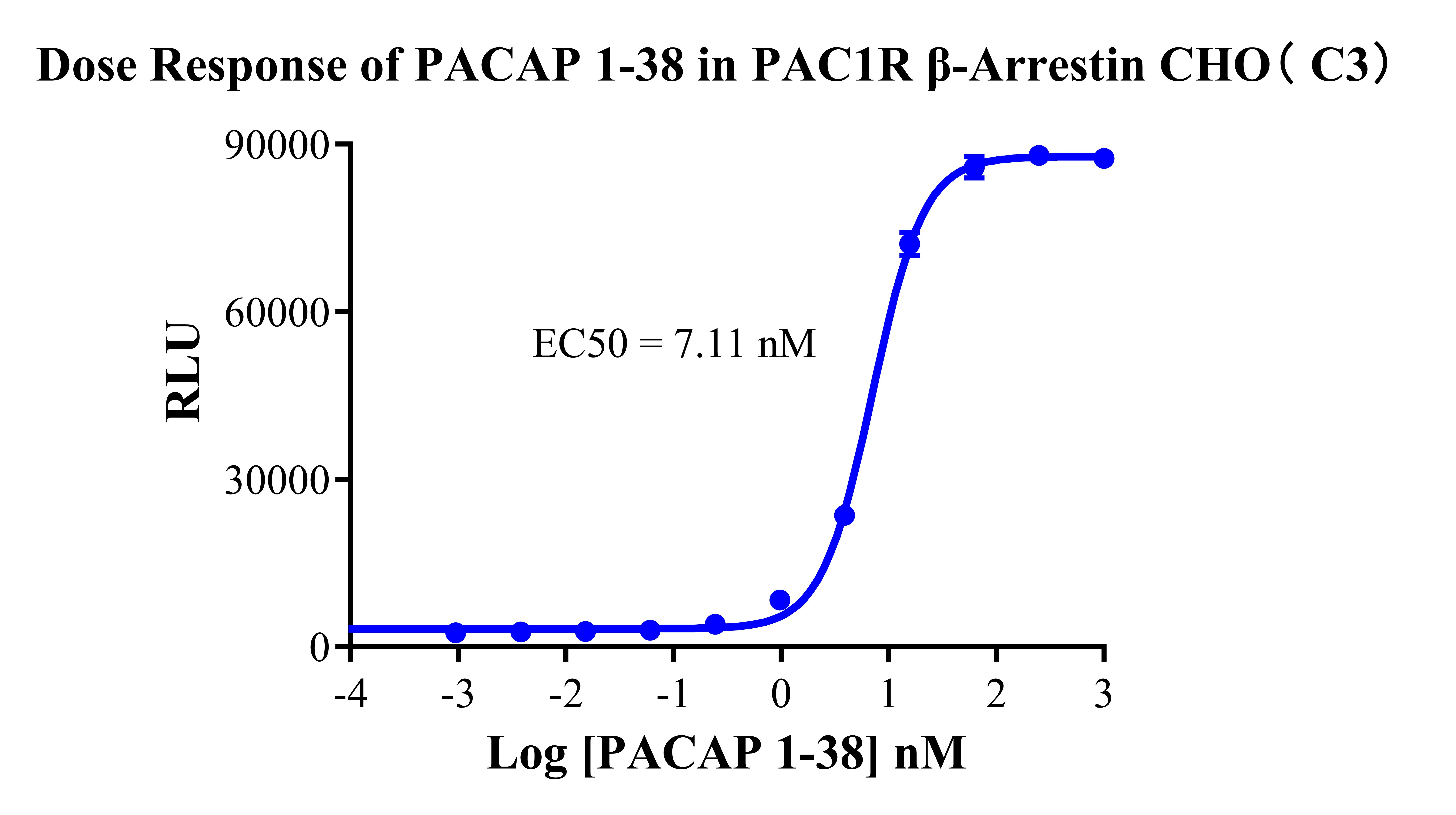 V. Representative Data![]() Figure 1. Recombinant PAC1R β-Arrestin CHO stably expressing PAC1R. ![]() Figure 2.Dose Response of PACAP 1-38 in PAC1R β-Arrestin CHO( C3). ![]() Figure 3.Inhibition of PACAP 1-38 induced β-Arrestin Recruitment by PACAP38 neutralization Ab in PAC1R β-Arrestin CHO(C3). |