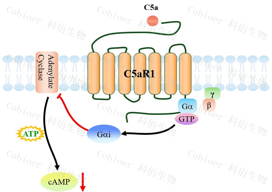 | 補(bǔ)體 C5a 是由補(bǔ)體系統(tǒng)經(jīng) C5 轉(zhuǎn)化酶裂解 C5 產(chǎn)生的強(qiáng)效炎癥介質(zhì),作為核心過(guò)敏毒素 通過(guò)結(jié)合受體 C5aR1/C5aR2 驅(qū)動(dòng)中性粒細(xì)胞趨化、氧化爆發(fā)及炎性因子(IL-6/TNF-α)釋 放,在膿毒癥中誘發(fā)“細(xì)胞因子風(fēng)暴”,在自身免疫病(如類風(fēng)濕關(guān)節(jié)炎)中促進(jìn)組織侵 蝕,在腫瘤微環(huán)境募集髓系抑制細(xì)胞(MDSC)介導(dǎo)免疫逃逸。 C5aR1(CD88)是補(bǔ)體過(guò)敏毒素 C5a 的高親和力 GPCR,主要表達(dá)于髓系細(xì)胞(中性 粒細(xì)胞、單核細(xì)胞、肥大細(xì)胞),通過(guò)激活 Gi/Gq 蛋白-PI3K/MAPK 通路驅(qū)動(dòng)炎癥級(jí)聯(lián)反應(yīng)。 |