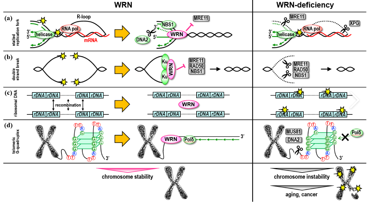 WRN(Werner Helicase)是一種具有解旋酶和核酸外切酶活性的多功能酶,在維持基因組穩(wěn)定性至關(guān)重要的各種細胞過程中發(fā)揮作用,包括 DNA 復制、轉(zhuǎn)錄、DNA 修復和端粒維護。